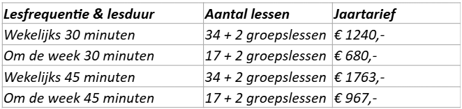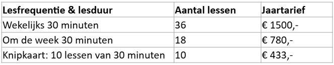 Groepslessen en concerten zijn in beginsel enkel voor kinderen. Volwassenen kunnen hier in overleg aan deelnemen.